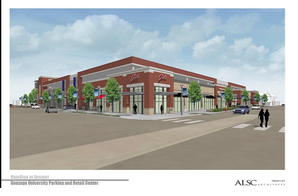 The new building, which will replace a surface parking lot, will be bordered by Hamilton and Cincinnati streets and DeSmet and Boone avenues. When finished in January 2013, the 250,000-square-foot Gonzaga Retail and Parking Center will be the new home of GU’s campus bookstore and eventually several retail businesses.