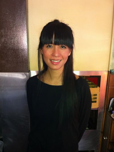 And wouldn’t you know it, the place not only had room for two adults, a baby and his stroller, but it featured a menu that allowed me to eat one of my favorite meals: breakfast for lunch (the other being, of course, breakfast for dinner). So, that explains the buttermilk pancakes, scrambled eggs, crispy bacon, yogurt and currants served in a cored green apple, drinkable coffee, all of which came fast and served by the woman, Trina, pictured above.