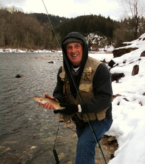 Dale Johnson snapped this photo of his father-in-law, Gary Gaines, during a fishing out on the St. Joe River near Calder last weekend. Emails Dale: “Calder got 6 new inches of snow Saturday night and Sunday morning. Although some parts of the river are not accessible, the fishing was outstanding. Kinda crazy fly fishing in a snowstorm. The fishing was as good as a good July day!”
