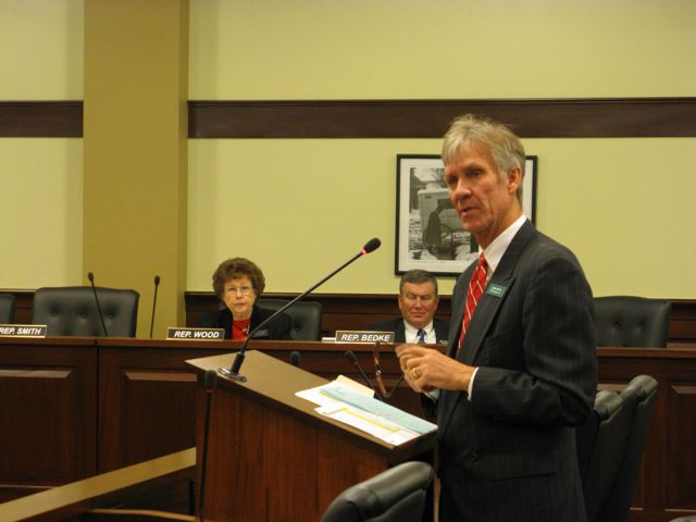 John Watts, lobbyist for the Idaho Chamber Alliance, spoke in favor of HB 563, the $35.7 million tax cut bill. “A corporate tax cut would put Idaho in the game,” he said; Idaho’s corporate tax rate currently ranks 23rd in the nation, he said, but it’s higher than neighboring states. “Mediocrity won’t cut it,” Watts said. “I think this is a splendid time to do this. … If we don’t do this now, we may not do it, and we may not do it very soon. … We will fall behind, because our neighbors are not going to sit around and wait.”