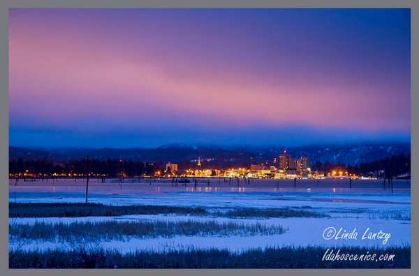 “This morning’s view of Coeur d’Alene Idaho from across Cougar Bay at 7 degrees,” tweets Linda Lantzy/Idaho Scenic Photos. “First lesson of the day~ Always put on the packpack. I really needed to shoot on bulb for this, but had left my remote in my backpack the Jeep. So, I bumped the ISO to 400 (something I hate doing), opened the aperature to f/7.1 (doable since I didn’t need much depth for this shot), and still had a 25 second exposure.” More of Linda’s work on her Facebook wall here.