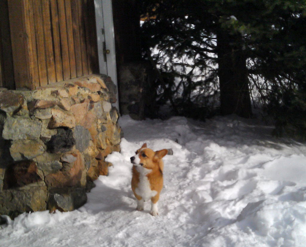 A Welsh corgi dog named Ole showed up at a Cooke City, Mont., motel four days after the dog and its owner were swept up in an avalanche. The dog’s owner died. The dog returned to this motel where they had been staying before going back country skiing. Story below. (AP Photo/Natasha Baydakova)