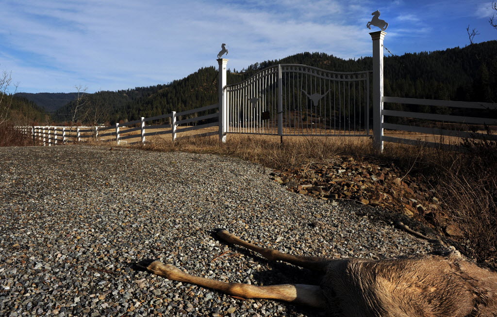This deer was found off the side of Fernan Lake Road near the Idaho Panhandle National Forest on Wednesday. Growth of rural residences on the perimeter of the national forest means more hazards for wildlife. (SR photo: Kathy Plonka)