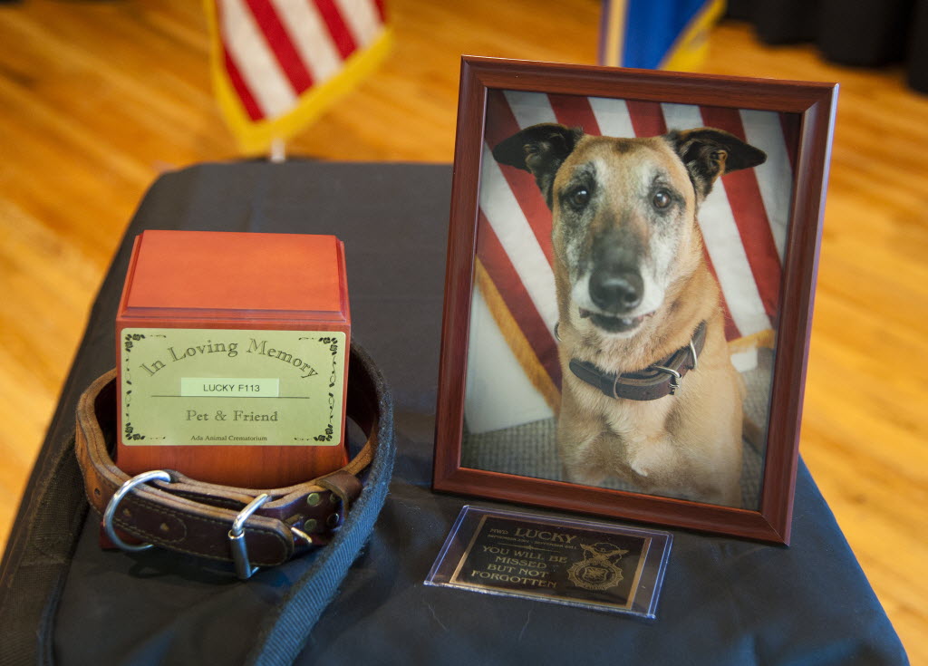 Lucky, a Fairchild Air Force Base miltary working dog, died Sept. 30. A memorial service to commemorate the life of Lucky, who was assigned to the 92nd Security Forces Squadron, was held on base today. Mike Prager’s SR story here. (SR photo: Colin Mulvany)