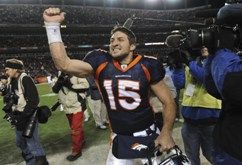 (AP photo: Tim Tebow celebrates after leading Denver over Pittsburgh in first round of NFL playoffs)