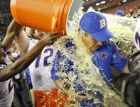 (AP file photo: Chris Petersen gets drenched after 2010 Fiesta Bowl win)