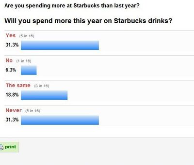 The unofficial results are in: one third of the respondents to our Starbucks budget survey said they expect to spend more there this year.