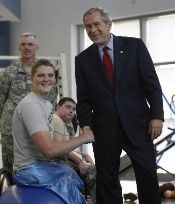 (In this 2007 AP file photo: Brandon Adam meets then President George Bush at a rehabilitation center in San Antonio, Texas)