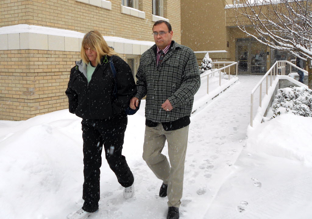 Jonathan Wade Ellington and his girlfriend leave Kootenai County District Court during a break in the opening day of his murder trial on Thursday for a 2006 road rage incident. (SR photo: Meghann Cuniff)