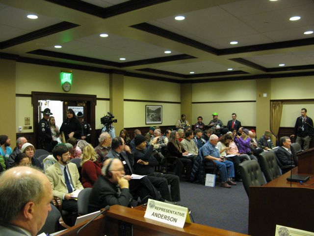 This morning’s planned hearing on legislation to evict the Occupy Boise encampment is being put off to Monday, due to a clerical error in the bill. “We have discovered a technical problem,” said House State Affairs Chairman Tom Loertscher, R-Iona. Loertscher said the committee will print a new version of the bill this morning, and put the hearing off to Monday. The room is full, with more than two dozen Occupy Boise supporters in the audience.