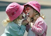 (AP file photo: Identical twins Kira, left and Kendra Ridgley, 3, share a multi-colored popsicle outside a Bayer’s Road convenience store in west-end Halifax, Canada)