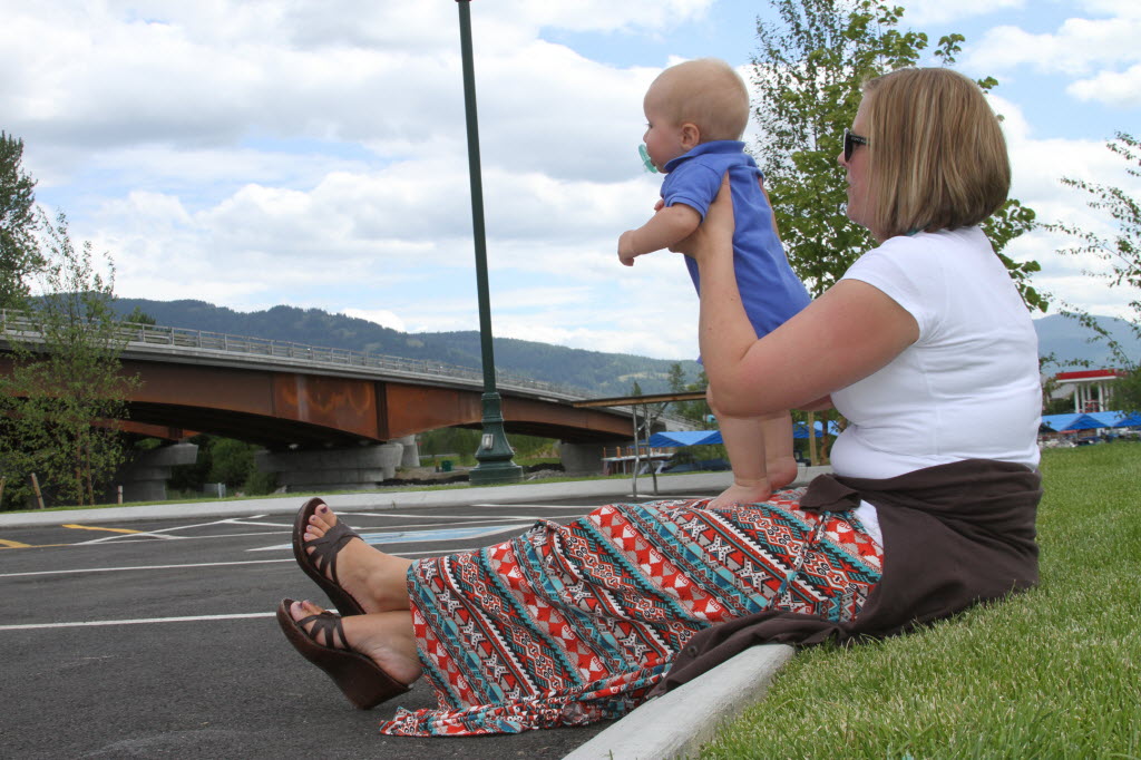 Jennifer Webley holds her son, Eli, at the dedication ceremony Friday in Sandpoint for the Sand Creek Byway. At $100 million, the project is the largest single construction project in Idaho history. (AP Photo/The Bonner Daily Bee, Caroline Lobsinger)