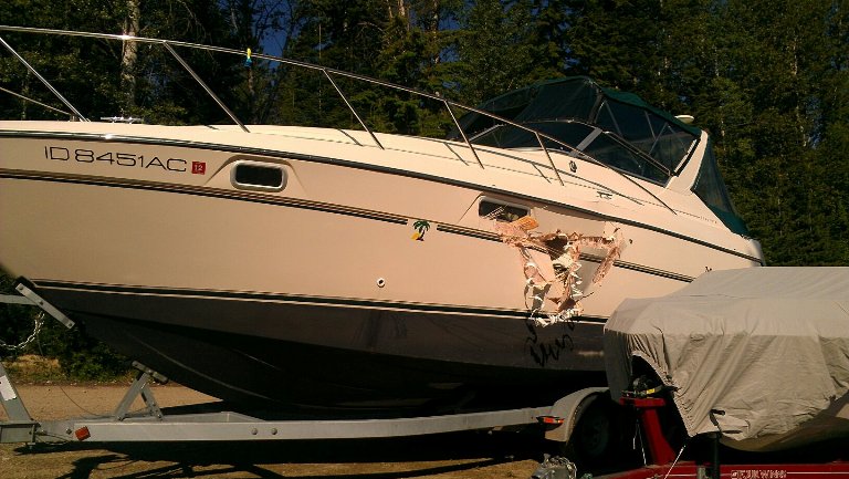 The Bonner County Sheriff’s Office is investigating a Wednesday night boating accident on Priest Lake that sent three people to the hospital. Around 11:30 p.m. an 18-foot ski boat T-boned a 32-foot Maxum that was anchored in Luby Bay, said Lt. Ed Jochum with the Sheriff’s Office. “Obviously, they’re going to need lots of repairs,” Jochum said. Neither of the boats sank, but the people onboard needed help to get to shore. All seven of the people on the boats are from Washington. Medical responders airlifted one person to Kootenai Medical Center in Coeur d’Alene. The other two injured boaters were taken to Newport Hospital. All the injured people left the hospitals after receiving treatment. The Sheriff’s Office has not released their identities/SR. More here . (Courtesy photo for Huckleberries Online by C. Landa/Priestlaker.com)