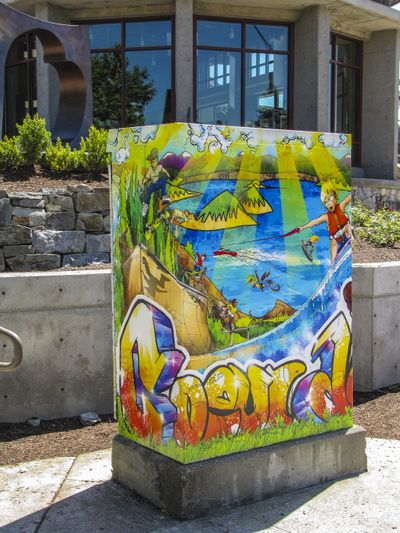 The first public art utility box has been in place in front of the Coeur d’Alene Chamber of Commerce building at Lakeside & Northwest Boulevard since Friday. Another will be unveiled soon, at 3rd and Sherman.