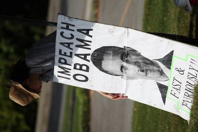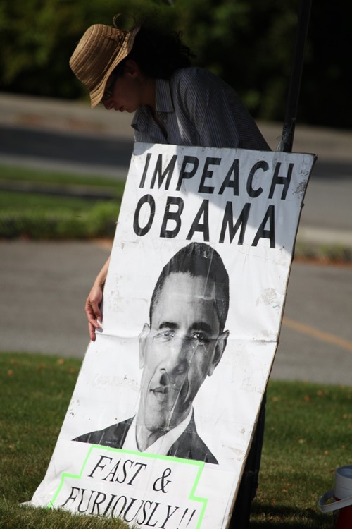 Lyndon LaRouche followers collected signatures this afternoon in an attempt to encourage the impeachment of President Barack Obama. They set up on the lawn just off the sidewalk on someone’s right a way in front of the Post Office in Hayden on Honeysuckle between Government Way and Highway 95. A Sheriff’s deputy asked them not to block the side wallk so they moved away from the mail box pick up area to the lawn at the turn out from the mail box pick up road. The woman above introduced herself as Hadiye from Seattle. (Duane Rasmussen photo for HucksOnline)
