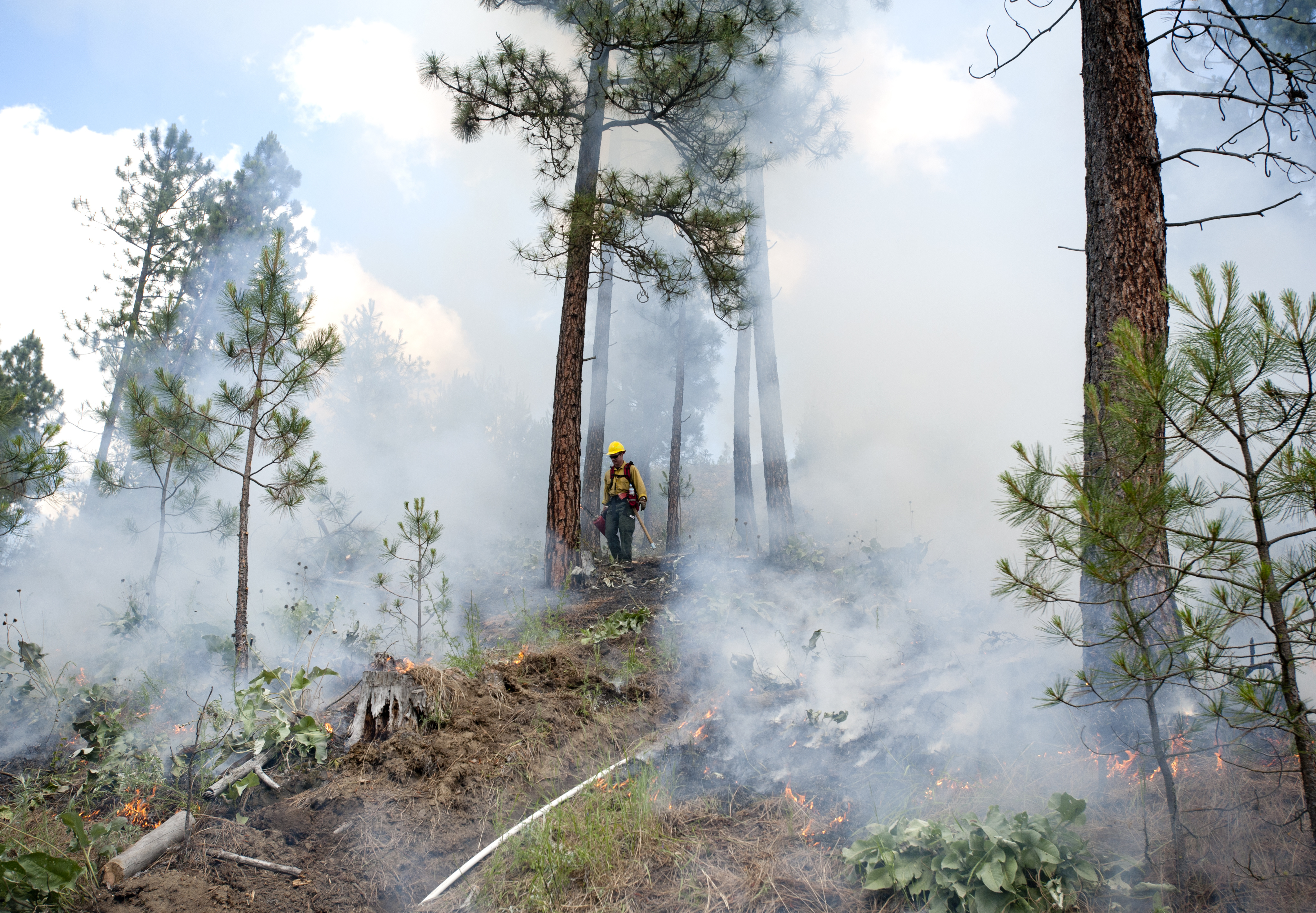 Firefighter Tom Carleton of Spokane Valley’s Ladder 10 walks through a charred hillside during a wildland fire training session Wednesday in Spokane Valley. SR photo/Tyler Tjomsland