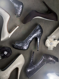 When it comes to color, white, ivory and other delicate neutrals or even metallics like silver and gold tend to be a safe bet. But these days, more and more brides are interested in wearing shoes with accents, patterns or a splash of color - your “something blue,” perhaps? These choices are perfectly acceptable as long as they enhance your gown and overall look, and suit your personality, says Hartwig. But, Leonard adds, make sure this statement shoe is formal enough to match the style of dress, as you don’t want the combination to be garish.