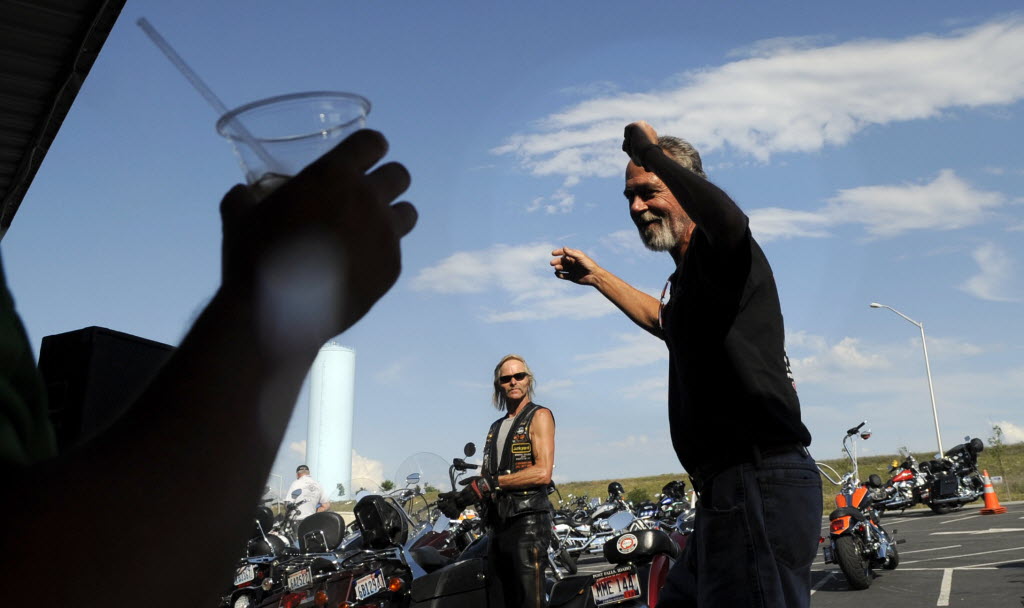 “I’ve been dancing for 30 years,” said Micky Martin, of Spokane Valley,front right, during opening night of the 7th annual Mini-Sturgis at Cruiser’s bar in Post Falls on Thursday. The event runs through Saturday night. Scott Maben/SR reports on the 8th annual Mini-Sturgis event and that the owners of Cruisers have put the bar up for sale here. (SR photo: Kathy Plonka)