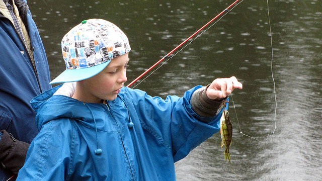 A small fry looks like a smaller fry during the annual Free Fishing Derby for the kids at the POND on Priest Lake Golf Course over the weekend. And Pecky Cox/As The Lake Churns was there to capture the moment. The event is sponsored by the “Priest Lake Sportsman Club” and has been occurring for 22 years. The pond was stocked with 1,000 hungry trout donated by Idaho Fish & Game Department. More here. And: More photos here.