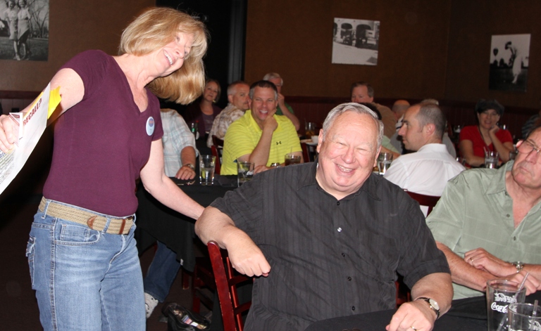 Mary Souza dances a little jig at the weekly Real Reagan Republicans luncheon Mary 17 shortly after announcing that she’d probably get her photo on Huckleberries Online shortly. Mary was greeted warmly by her peeps. Imagine the jig Mary is dancing today now that she and her Recallers appear to have the necessary signatures to trigger a Recall election against her political foes Mayor Sandi Bloem and Councilman Mike Kennedy and two other council members (Photo Photographer photo)
