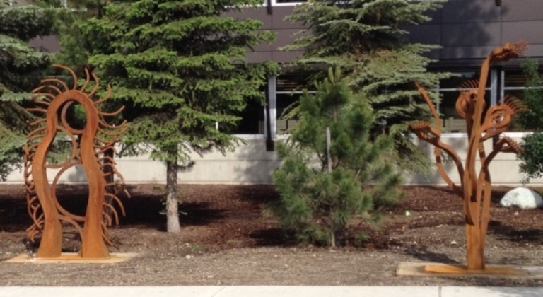 A coupla Berry Pickers snapped this photo of public art at the wastewater treatment plant (aka Sharon Culbreth’s “poop plant”) during a walk on the news stretch of Centennial Trail along the Spokane River and Education Corridor. One Berry Picker writes: “The sculptures are awesome and educational. What a cool idea!” If you haven’t had the chance to view the new infrastructure for the Education Corridor, you should drive or ride your bike over to it. Impressive.