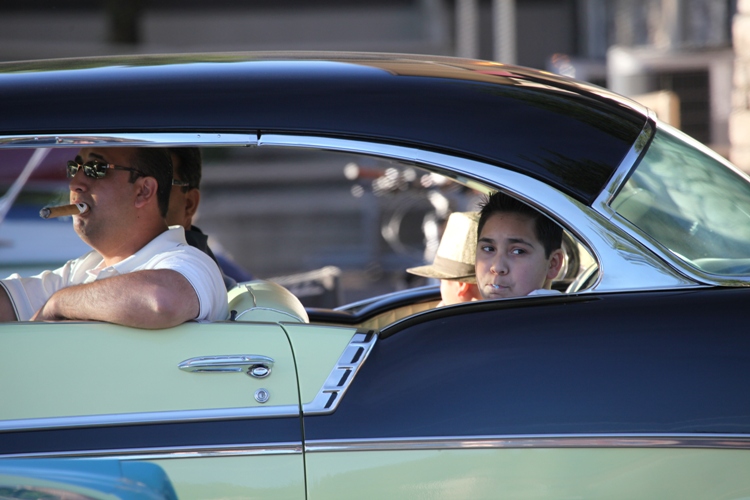 The Phantom Photographer wonders what the boy in the back seat has in his mouth. Maybe a candy copy of whatever the man is smoking in the front seat? PP snapped this photo during the annual Car d’Lane cruise Friday night in downtown Coeur d’Alene.