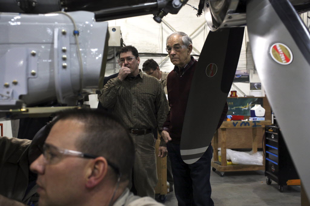 Matt Mills McKnight, who’s a Twitter & Facebook Friend, snapped these photos of Republican presidential candidate Rep. Ron Paul, R-Texas, for the Associated Press today. Here, Paul tours the manufacturing facility at Quest Aircraft Company in Sandpoint. (AP Photo/Matt Mills McKnight)