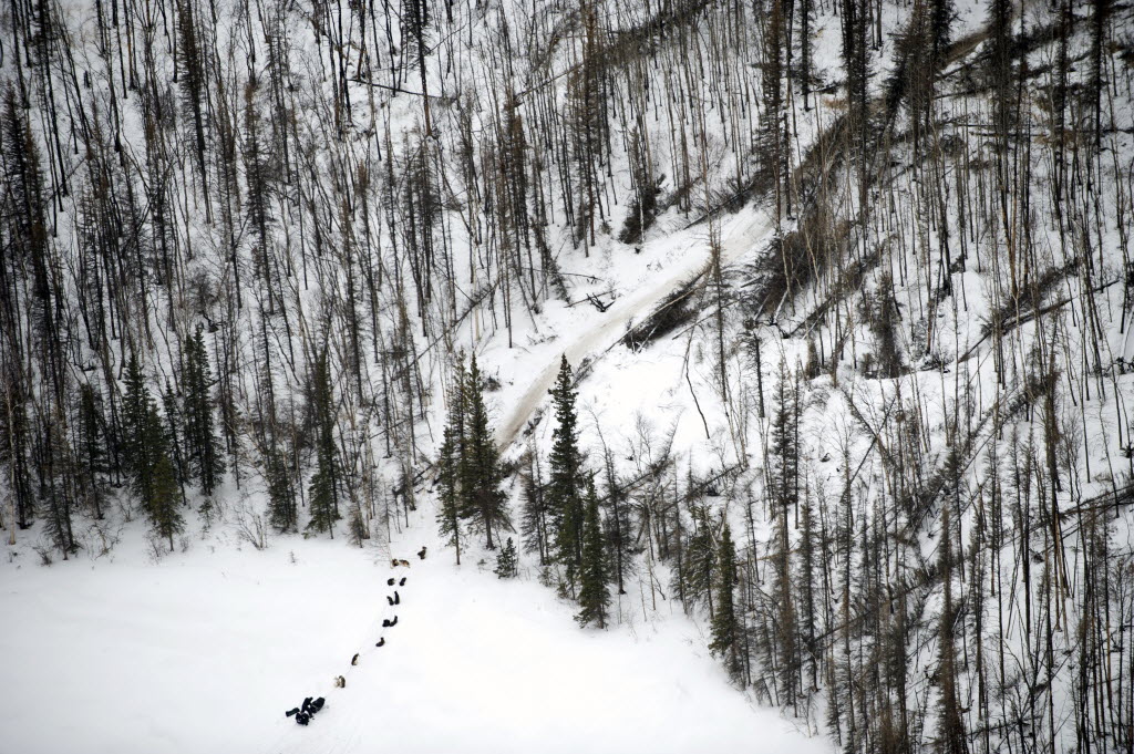 A musher approaches a climb in the Farewell Burn during the Iditarod Trail Sled Dog Race on Tuesday in Nikolai, Alaska. (AP Photo/The Anchorage Daily News, Marc Lester)
