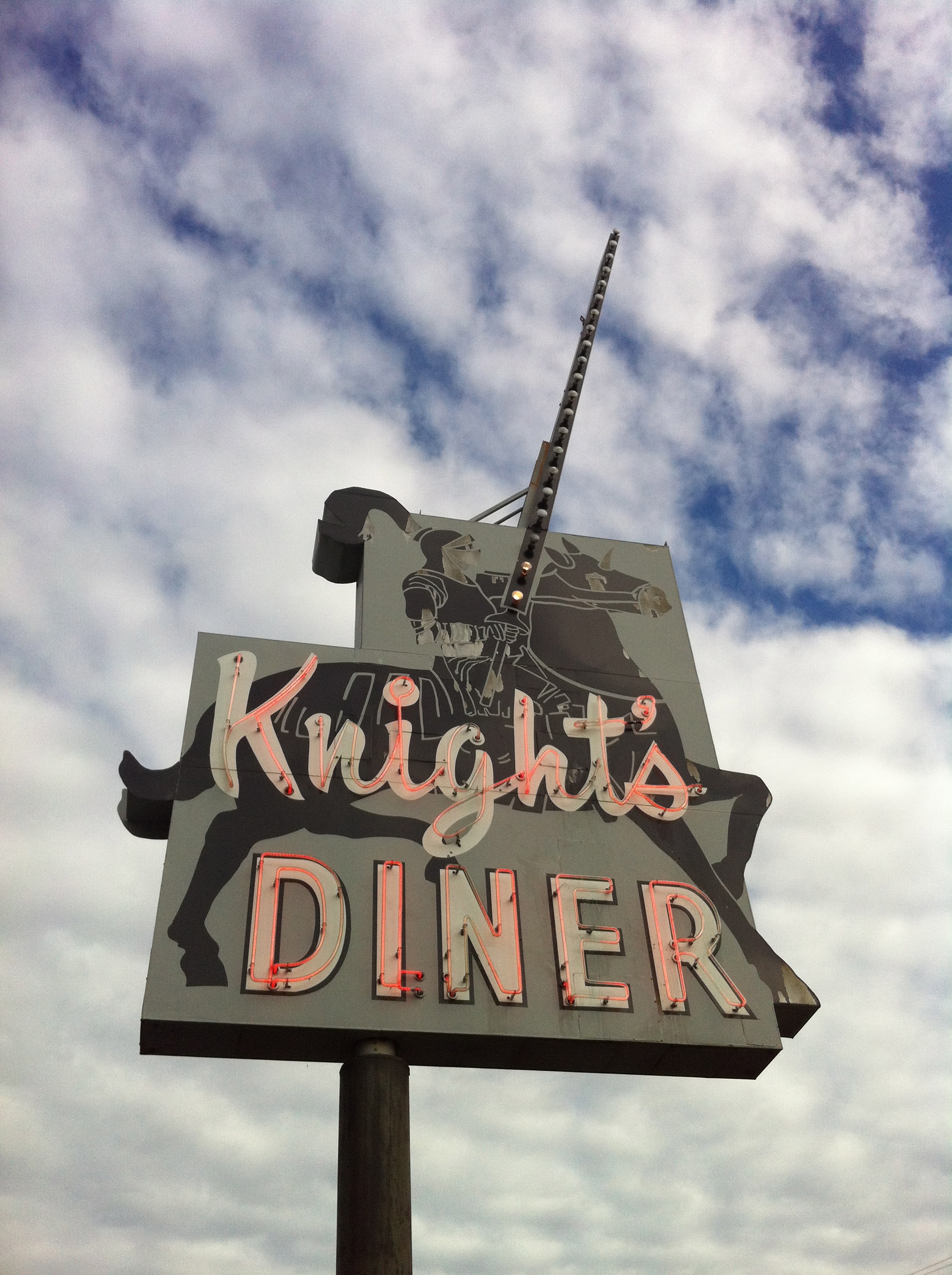 So if you’ve had a big night and you’re looking to carbo-load, and you don’t mind bumping elbows with your fellow diners, try Knight’s. Look for the sign of the lance.