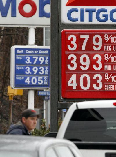 Gas prices are seen today in Montpelier, Vt. Gasoline prices rose again Friday and are now averaging more than $4 in six states plus Washington, D.C. Retail gasoline prices were up a penny on Friday to a national average of $3.831 per gallon. See today’s poll question below. (AP Photo/Toby Talbot)