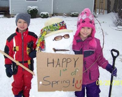 On her Facebook wall , KXLY weathermeister Kris Crocker posts this photo sent to her by the Klynstra family of Sandpoint today re: the snow that surprised us this morning on the first day of spring.