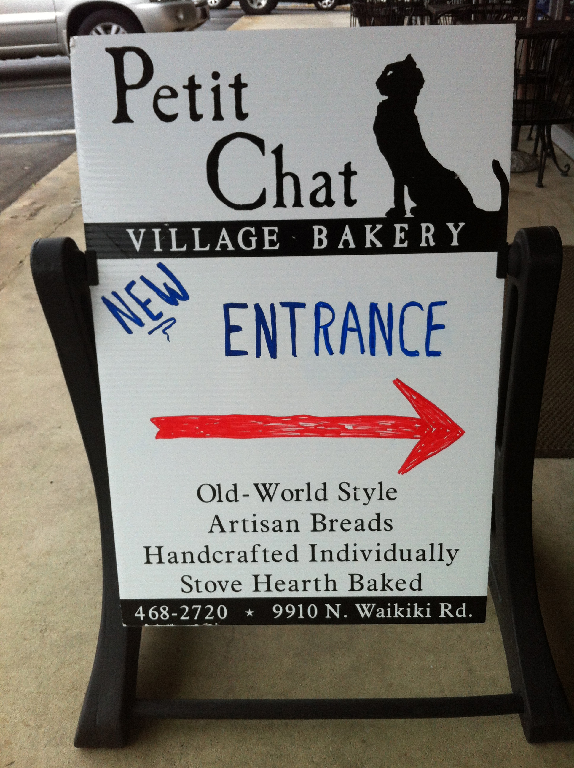 But this morning, for purely nostalgic reasons, I continued north. And as I drove up Country Homes Boulevard, I spotted the Petit Chat Village Bakery. And, feeling hungry, I stopped in. Ten minutes later, I returned to my car, two freshly baked croissants in hand. One was a cranberry-turkey-swiss concoction; the other a cherry pastry. Both were delicious, with just that touch of crusty croissant you find all over Europe (but are so uncommon here in the U.S.).