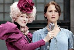 (AP/Lionsgate file photo: Elizabeth Banks portrays Effie Trinket, left, and Jennifer Lawrence portrays Katniss Everdeen in a scene from “The Hunger Games”)