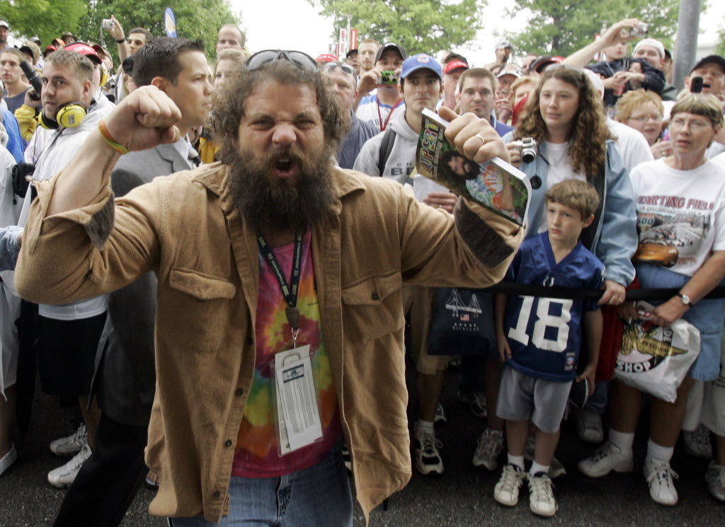 In this May 27, 2007, file photo, May Rupert Boneham, from the television show “Survivor,” pumps up the crowd before a race at Indianapolis Motor Speedway in Indianapolis. Libertarian Party members are set to nominate the former television reality series star as their candidate for Indiana governor during its state convention on Saturday in Indianapolis.. (AP Photo/Rob Carr, File)