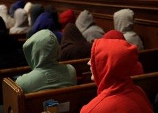 (AP photo: Congregants wear hoodies during a service at Middle Collegiate Church in New York Sunday)