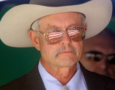 John Workman watches as his son Sgt. Chris Workman’s casket is reflected in his glasses Friday at the Rupert Cemetery in Rupert. Chris Workman died April 19 when the helicopter he was in crashed in bad weather during a night flight in southern Afghanistan. (AP Photo/The Times-News, Drew Nash)