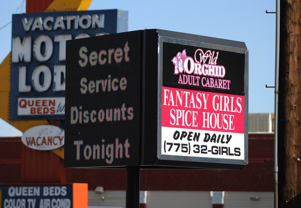 A local adult cabaret business in downtown Reno makes fun of the recent secret service sandal on Friday. (AP Photo/Reno Gazette-Journal, Andy Barron)