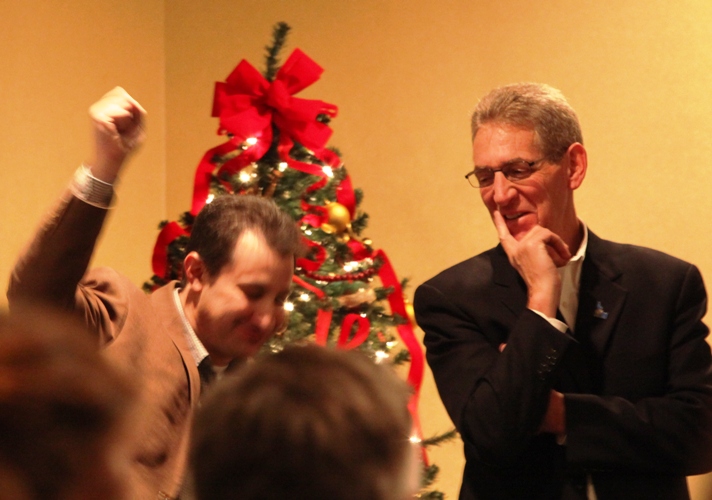 State Rep. Bob Nonini, who is unopposed in the Senate District 3 primary for Jim Hammond’s seat, is shown with Wayne Hoffman of the Idaho Freedom Foundation during a presentation by Hoffman during Christmas 2011 at Red Lion Templin’s in Post Falls. Through his PAC, Nonini has given $13,000 to challengers trying to topple GOP legislators, including Sen. Shawn Keough and Rep. George Eskridge in District 1. Which raises the question re: ambitious Nonini: What’s his end game?
