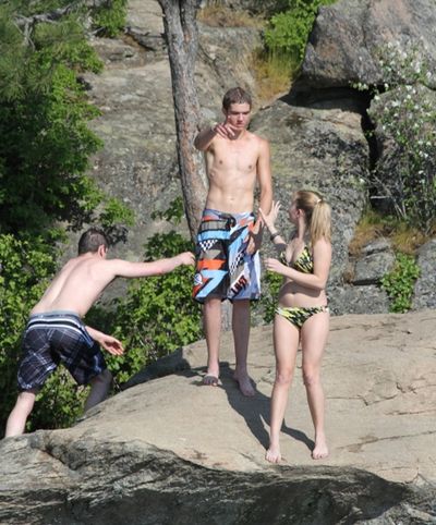 A reluctant girl is hesitant to jump about 20 feet from rocks on Tubbs Hill into Lake Coeur d’Alene. But she doesn’t appear to be getting sympathy from a companion. The Phantom Photographer was there to photograph this scene.