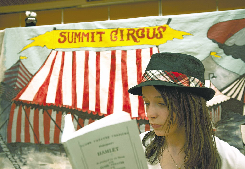 Marissa Gerber, playing Hamlet, practices her lines during a rehearsal of the play “Hamlet” recently at Summit School in Spokane. (SR photo: Tyler Tjomsland)