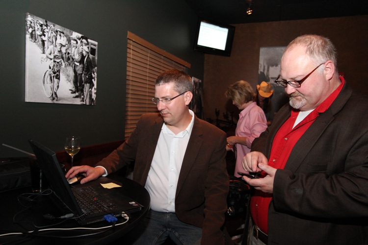 Above, Real Reagan Republicans chairman Ron Lahr, left, and former chairman Jeff Ward watch election results Tuesday night. (Phantom Photographer photo)