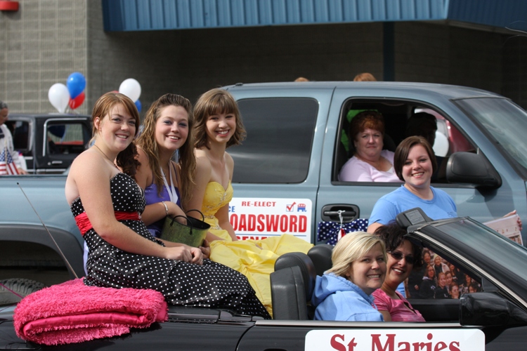 … State Sen. Joyce Broadsword in the pickup in the background, not the any of the three St. Maries parade queen contestants in the foreground). This photo was taken two years ago when Broadsword was campaigning for re-election in her old Senate District 2. Broadsword abandoned her seat in the state Senate after she was redistricted into the sprawling Senate District 7. Instead, she won a tough GOPrimary fight with uberconservative Bonner County Commissioner Cornel Rasor Tuesday night. (Phantom Photographer photo)