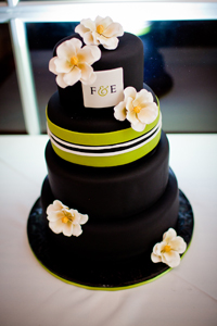 That said, be advised that certain fondant colors can easily fade in the sun. It’s mostly reds, pinks and purples, Watkins says, and since black contains all these colors, it is even worse. Ask that your cake be delivered in a cardboard box that’s taped shut, and keep it inside for your festivities or protected beneath a tent. If your cake is black, Watkins also warns against touching the matte finish, as moist or oily hands will leave fingerprints.