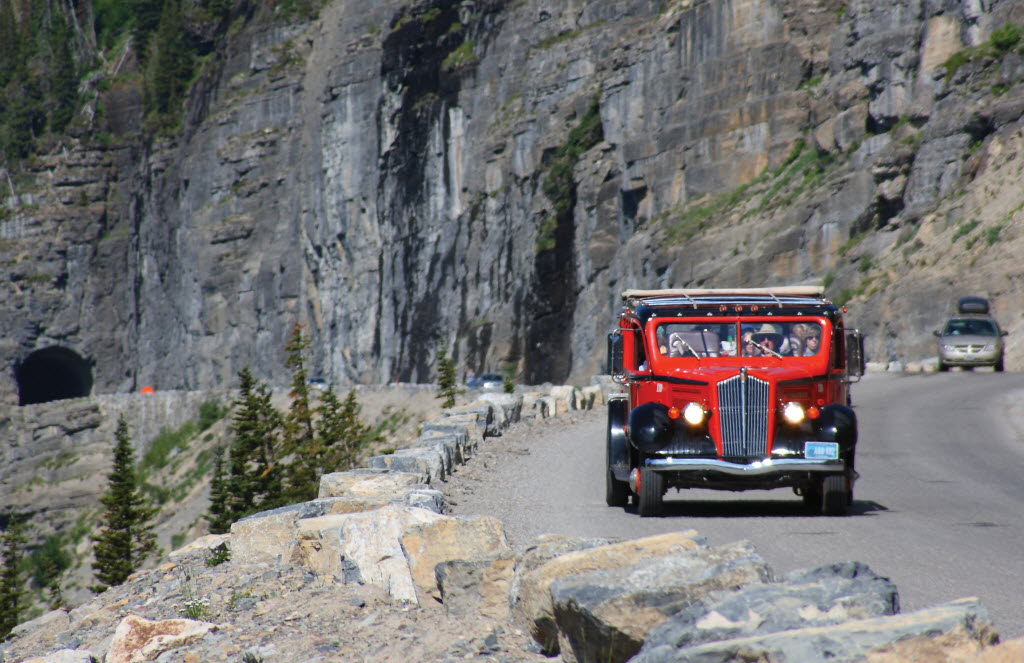 This Aug. 12, 2011, photo shows one of 25 touring buses, built in the late 1930s by the White Motor Company and designated as Model 706, known in these parts as “Reds,” on Logan Pass at Glacier National Park, Mont. With the days getting longer and tourist season approaching, a small team of mechanics are working to ensure the entire fleet of Glacier Park “Red Buses” are ready for another summer of touring up and down the legendary Going-to-the-Sun Road. Just like the fleet has done almost every year for the last seven decades. More here. (AP Photo/Flathead Beacon, Justin Franz)