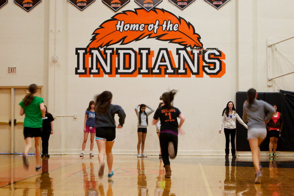 In this Feb. 3 file photo, shows students work out in the Roseburg High School gym in Roseburg, Ore., where the school’s mascot is the Indians, and their logo is a feather. The Oregon Board of Education is scheduled to vote on a resolution that would require Oregon schools to retire their Native American mascots within five years or risk losing state funding. The vote today could give Oregon some of the nation’s toughest restrictions on American Indian nicknames, mascots and logos. If approved, eight high schools would need to change their nickname and mascot by July 2017 or lose state money. Seven schools identified as the Warriors would only have to alter their mascot. (AP Photo/The Oregonian, Bruce Ely, File)