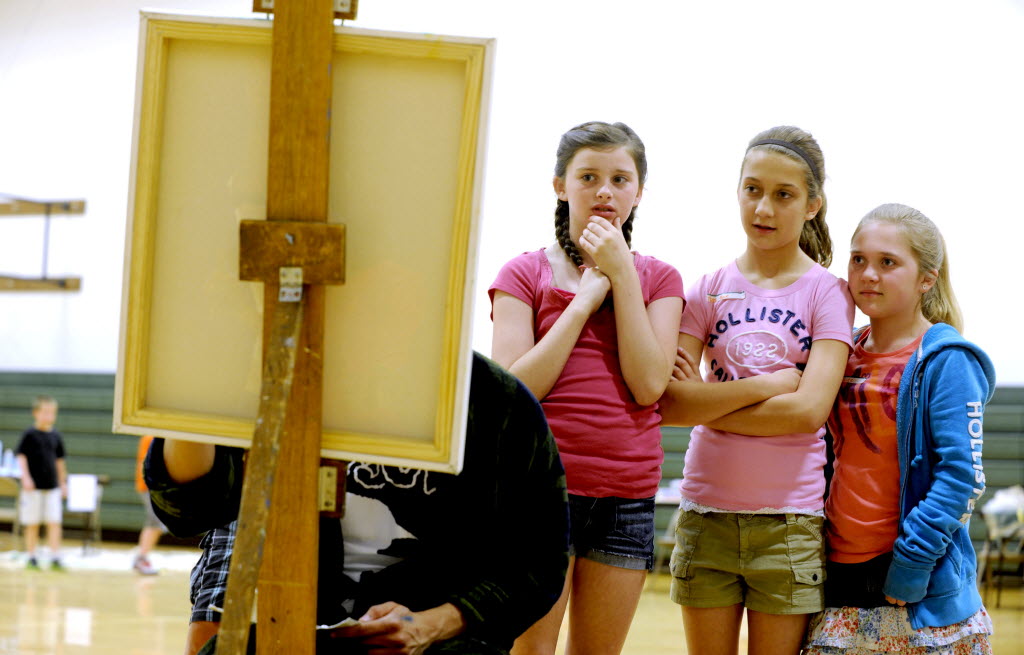 “It was a little different,” said Atlas Elementary 5th grader Maddi Howe, center as she and her classmates Krista Hawkes, left and Blaike Nelson, right took in the scenes from the 4th annual Art Tour at the school in Hayden earlier this week (Kathy Plonka SR photo)