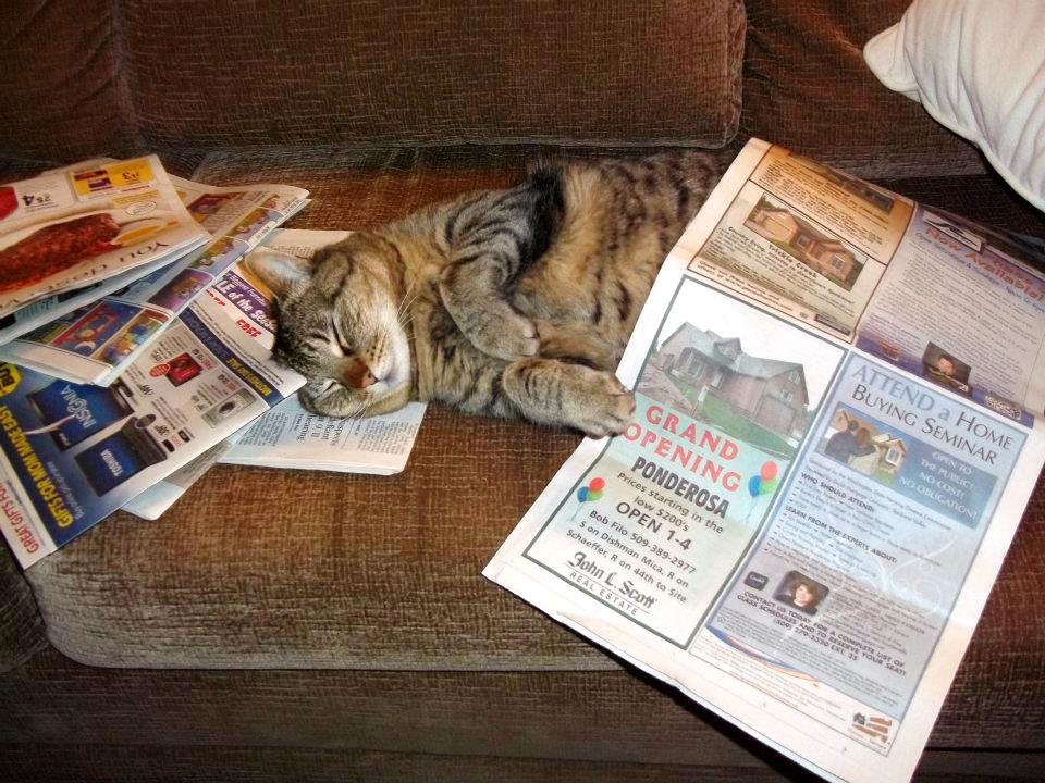 Commenter Staci sends this picture of her cat, Bob. She writes, “Not only does he look like your cat Thor, but as you can see, he also has the same demeanor. One difference though. Apparently Bob can read. And he’s looking for a new place to live. I’m always the last to know.”