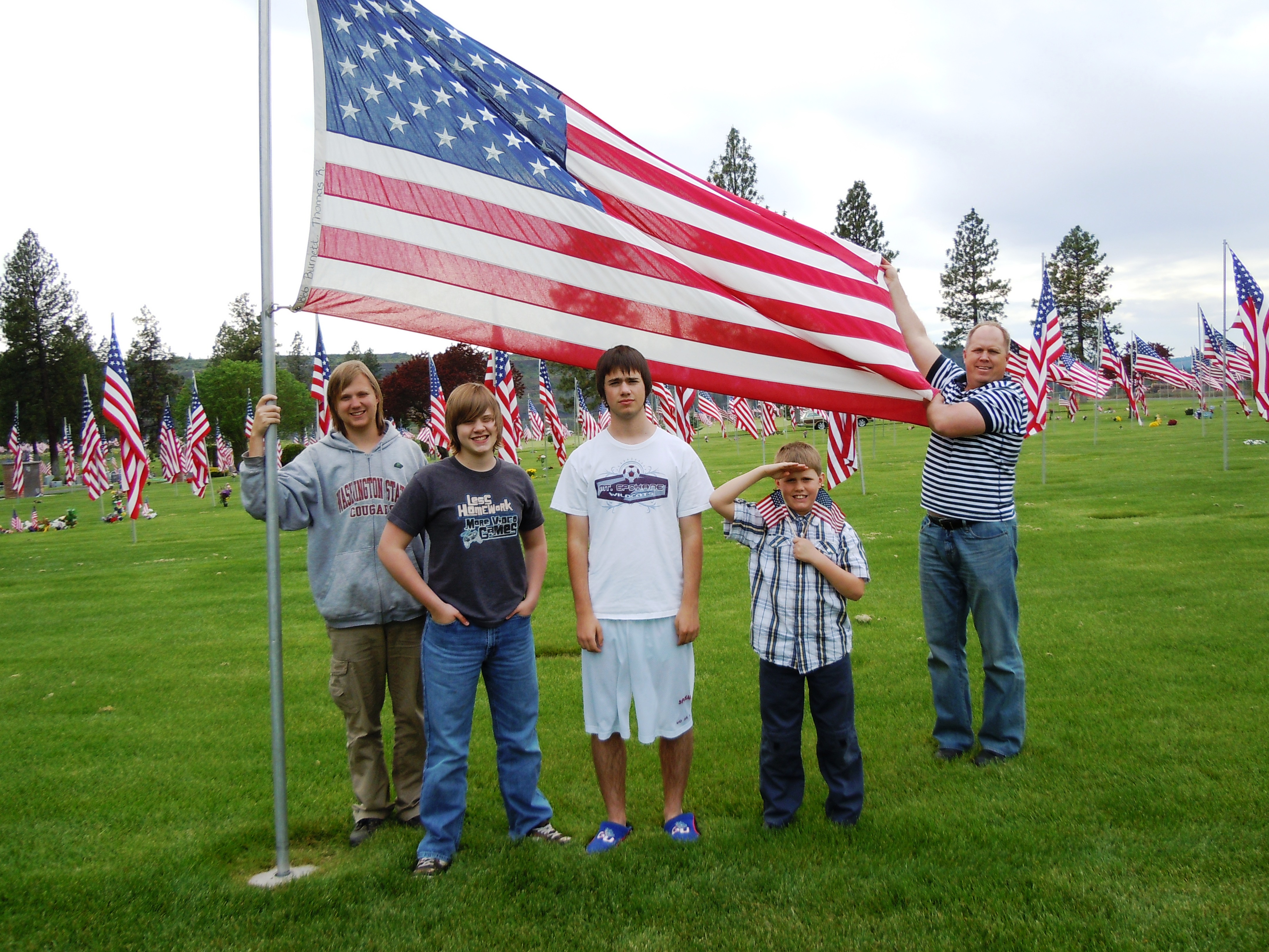 Yep. That’s my guys, minus the cats. This photo was taken 2 years ago at Fairmount Memorial Park where my dad is buried. Every year we visit his grave and then go find the flag with his name on it. The flag is flown every year in honor of my dad’s 23-year Air Force career.