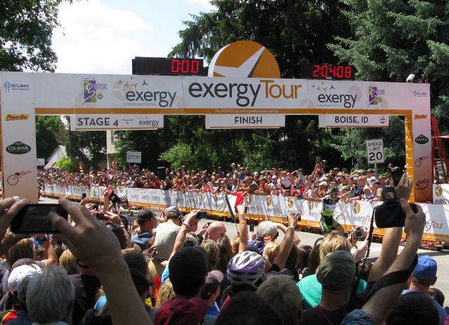 U.S. rider Evelyn Stevens has won the inaugural Exergy Tour, taking the overall race and finishing a very close second in the tour’s final stage to German rider Claudia Hausler, in a dramatic finish to the five-day professional women’s bike race in Boise.