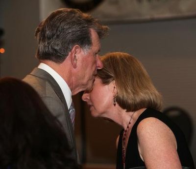 Idaho Gov. Butch Otter and Coeur d’Alene recall leader Mary Souza chat during the Unity Dinner, sponsored by the Post Falls Pachyderm Club, Monday night, April 30. (Phantom Photographer file photo)